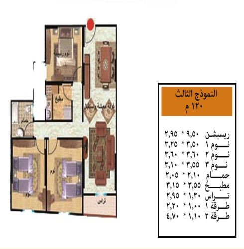 يتكون المسقط الافقي للنماذج من 4 نماذج مختلفه مساحات 100م & 120م& 140م
