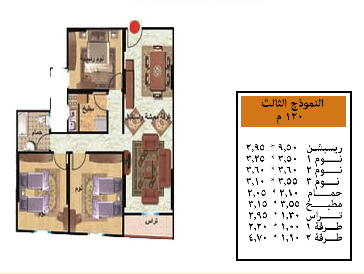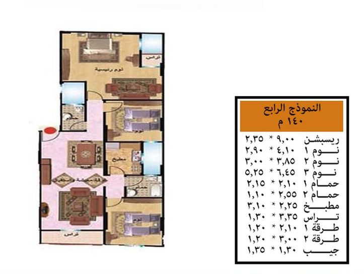 يتكون المسقط الافقي للنماذج من 4 نماذج مختلفه مساحات 100م & 120م& 140م