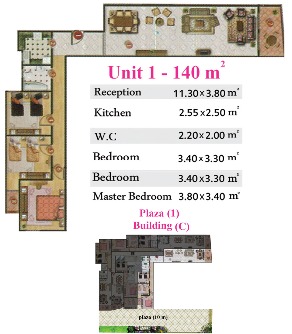 – وحدات سكنية عبارة عن 10 طوابق بمساحات وتصميمات مختلفة تبدأ من 69 م حتى 248 م .